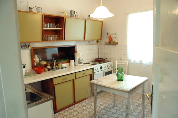 links geht es zur Küche, dort wo Sie gerade sitzen,